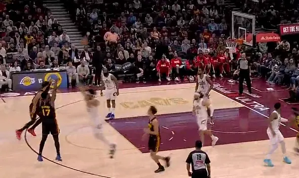 比赛的第二节,奥孔古接手递手传球三分命中,老鹰领先骑士到两位数分差。